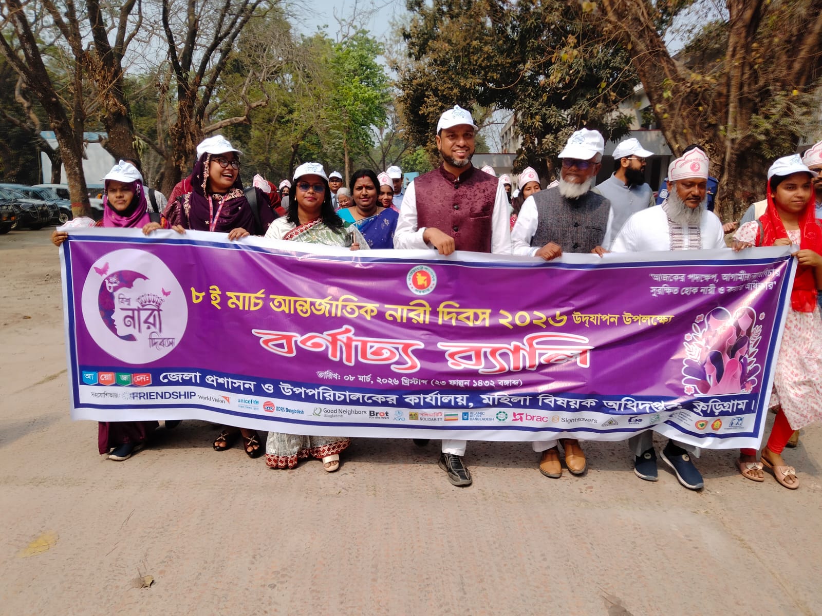 "আজকের পদক্ষেপ, আগামী ন্যায়বিচার সুরক্ষিত হোক নারী ও কন্যার অধিকার" এই প্রতিপাদ্যে কুড়িগ্রাম সদরে ও নাগেশ্বরী উপজেলায় আন্তর্জাতিক নারী দিবস ২০২৬ উদযাপন উপলক্ষে র্যালি ও আলোচনা সভা অনুষ্ঠিত হয়েছে।
