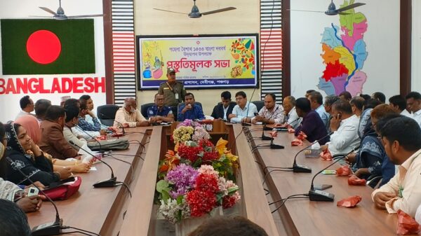 মোমিন ইসলাম সরকার, দেবীগঞ্জ (পঞ্চগড়) প্রতিনিধি:আসন্ন পহেলা বৈশাখ উদযাপন উপলক্ষে দেবীগঞ্জ উপজেলা প্রশাসনের উদ্যোগে একটি প্রস্তুতিমূলক আলোচনা সভা অনুষ্ঠিত হয়েছে।সোমবার (৩০ মার্চ) সকালে উপজেলা পরিষদ হলরুমে সভাটি অনুষ্ঠিত হয়।উক্ত আলোচনা আরও পড়ুন