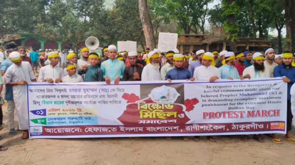 সুজন আলী, রাণীশংকৈল (ঠাকুরগাঁও) প্রতিনিধিঃমহানবী হযরত মুহাম্মদ (সা.) কে নিয়ে কটূক্তিকারী বিধান রায়ের দৃষ্টান্তমূলক শাস্তির দাবিতে ঠাকুরগাঁওয়ের রাণীশংকৈলে বিক্ষোভ মিছিল ও প্রতিবাদ সমাবেশ অনুষ্ঠিত হয়েছে।হেফাজতে ইসলাম বাংলাদেশ রাণীশংকৈল শাখার আয়োজনে, আরও পড়ুন