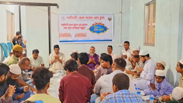 মোঃ কামাল হোসেন প্রধান জেলা প্রতিনিধি নরসিংদীঃ নরসিংদী জেলা মডেল প্রেসক্লাব এর উদ্যোগে শুক্রবার (১৩ মার্চ) নরসিংদীর মডেল মসজিদ সংলগ্ন নরসিংদী জেলা মডেল প্রেসক্লাব এর সভাপতি মোঃ আকিকুল ইসলাম স্বপনের